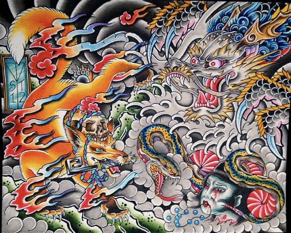 Items similar to Traditional Japanese Dragon snake and fox ... from img1.etsystatic.com We did not find results for: Maybe you would like to learn more about one of these? Check spelling or type a new query.